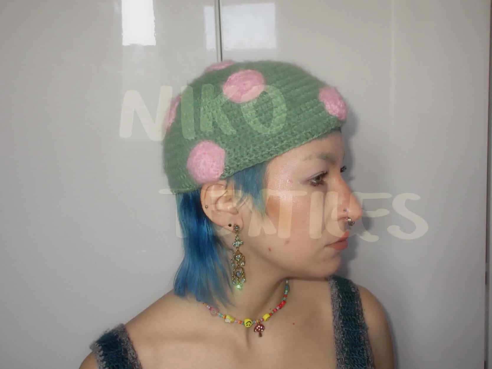 Shop › Polka Dot Beanie Image 1 of 1 Polka Dot Beanie CA$50.00 Made with green and pink wool. Crocheted by hand. Brushed for that fuzzy feeling. Add To Cart Added! Made with green and pink wool. Crocheted by hand. Brushed for that fuzzy feeling.